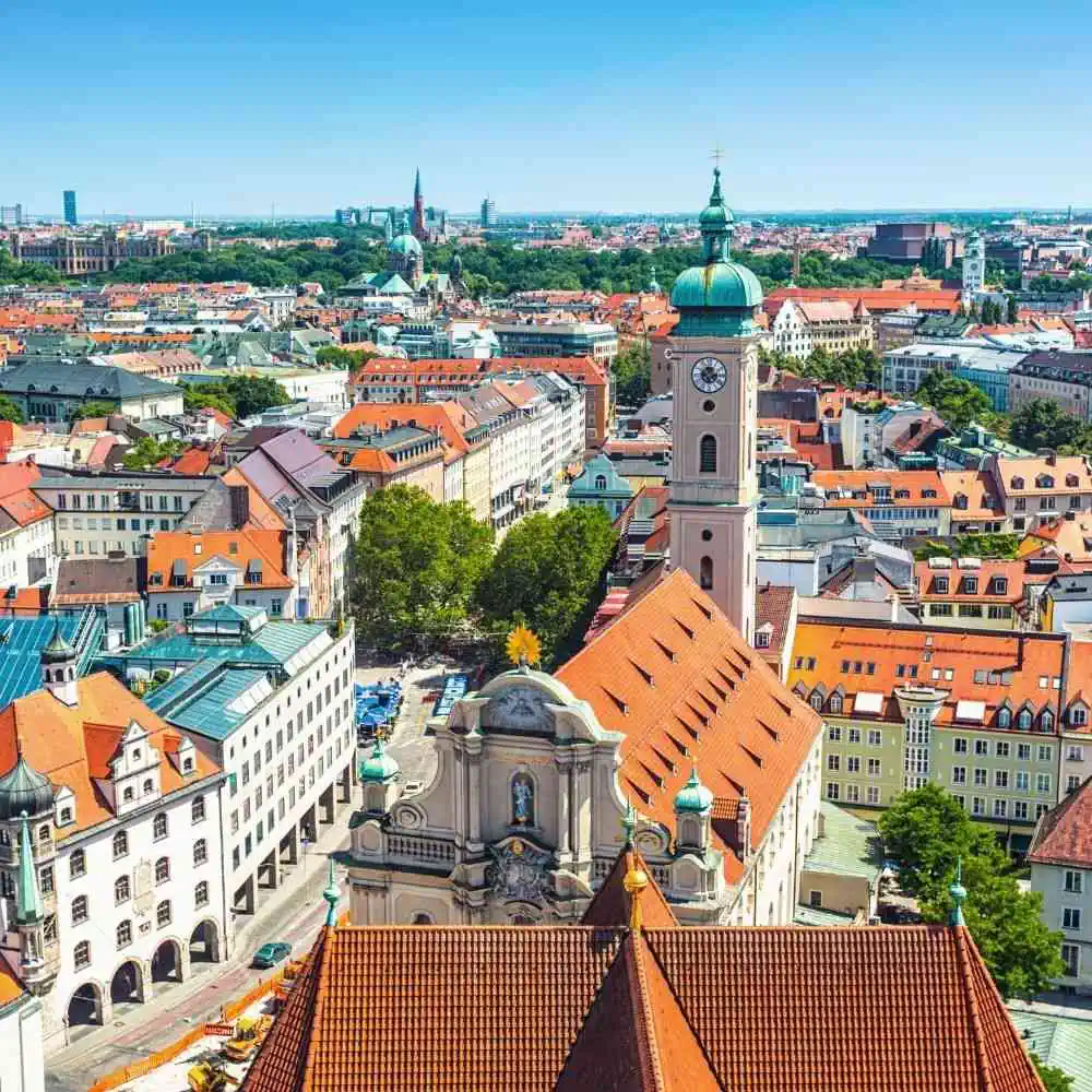 The best way to start exploring Munich is to head to the Old Town, Marienplatz. This area is home to the beautiful Glockenspiel and St. Peter's Church. From here, you can explore the connecting streets and alleyways, which are full of character and atmosphere. Visiting the Viktualienmarkt is also recommended, as this is Munich’s central farmers market and gathering spot.
